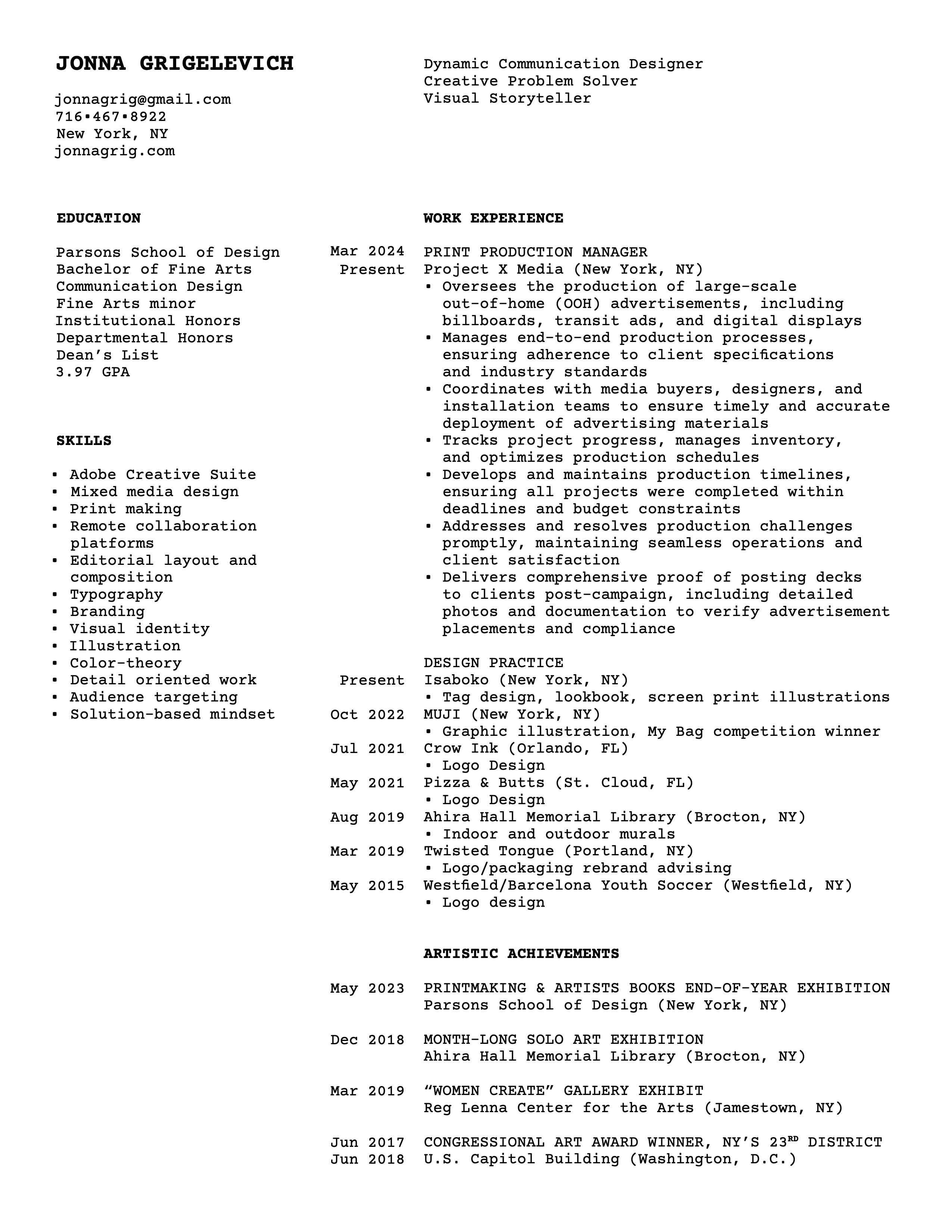 A New York City based designer and graduate of Parsons School of Design. A practicer of print-based media projects and graphic design. A manager of print production. Let’s not limit ourselves. Let’s be flexible, let’s solve problems creatively, let’s allow design to be expressive, let’s merge techniques and share practices, let’s be human, let’s (try to) have fun and embrace the journey of the process, let’s work together.